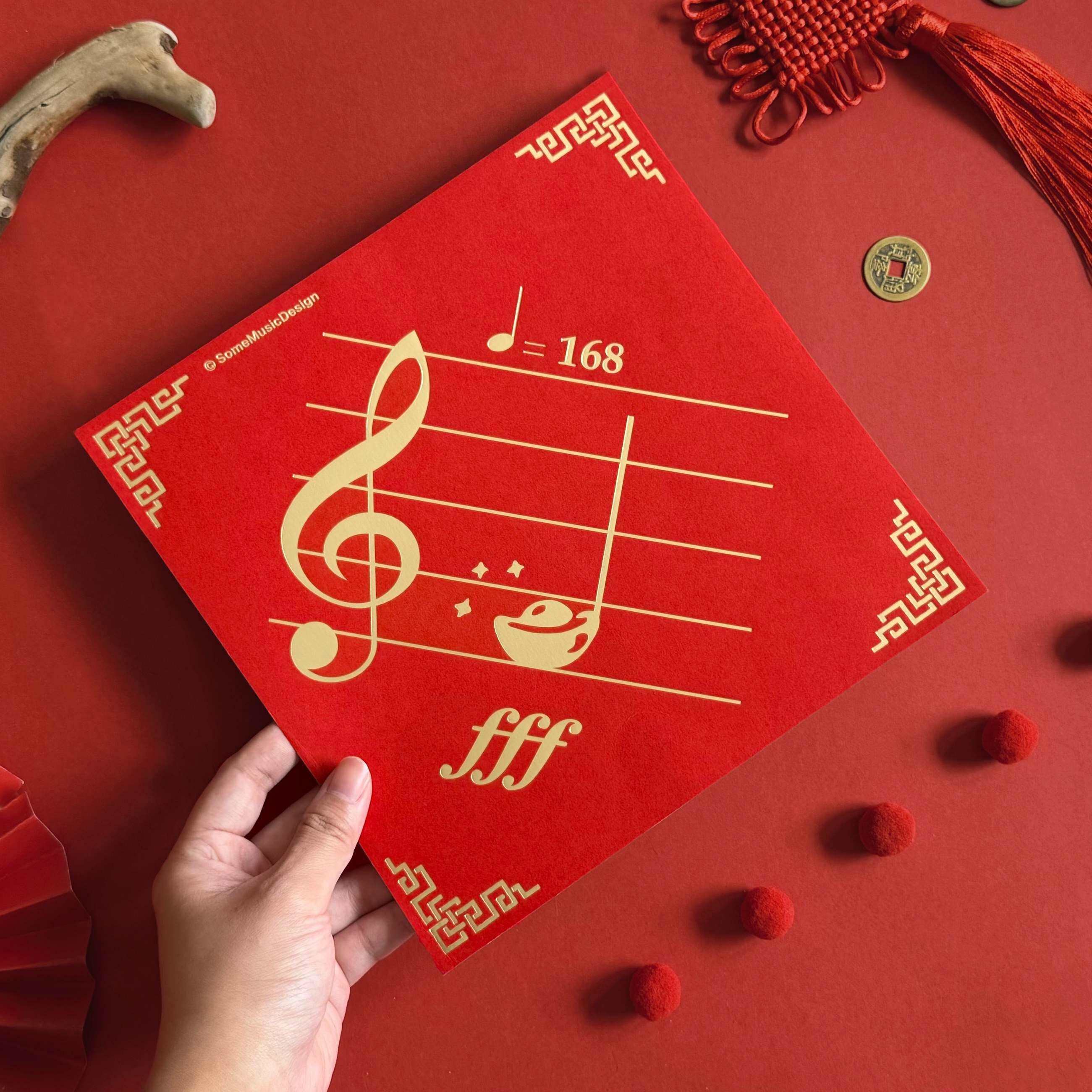 屬於音樂人的趣味,除了吉祥又喜氣,將音符Fa變為金元寶,保佑全年Fa大財!
